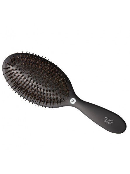 HH SIMONSEN GLOSS BRUSH plaukų šepetys su šerno šereliais turi unikalią, natūralių laukinio šerno ir ypatingai lanksčių SmartFlex šerelių kombinaciją, kuri paskirsto natūralius plauko aliejus nuo galvos odos iki plaukų galiukų, taip suteikdamas jiems sveiko blizgesio.